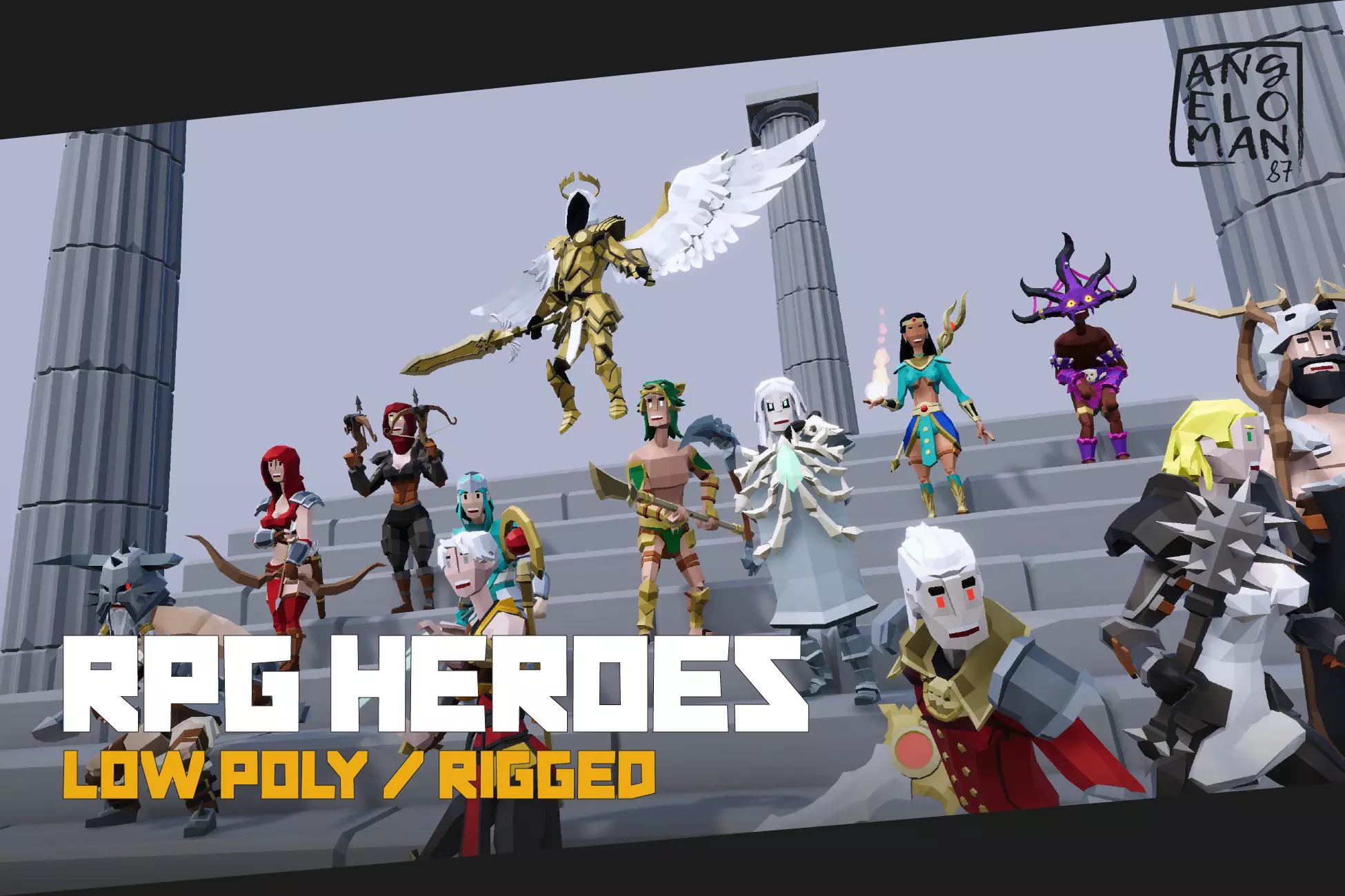 Low Poly RPG characters rigged in T-pose, with optimized meshes and shared textures. Include blink and mouth gestures. Ideal for NPCs, heroes, enemies, cutscenes, and mobile games.